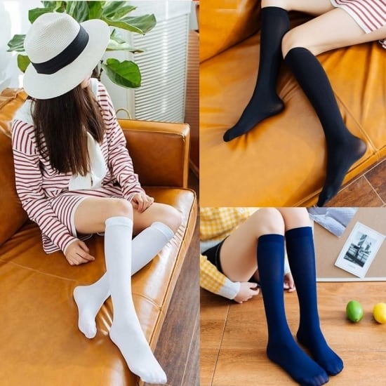 靴下 ソックス ハイソックス レディース くつ下 膝上 ひざ下 ストッキング ソックス ニーハイソックス 薄手 18デニール 40デニール 4組セット 女子高生 コスプレ 靴下 ソックス ハイソックス