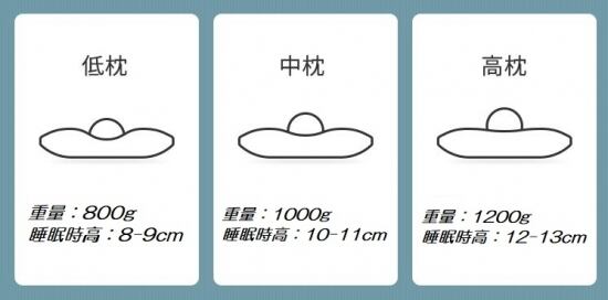 低枕:74×48cm、睡眠時の高さ8-9cm、重量800g