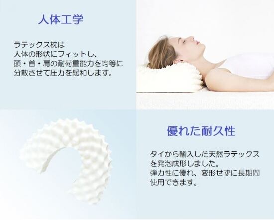 固くて柔軟性のある天然ラテックスの優れたサポート力で頭と首の圧迫を軽減☆