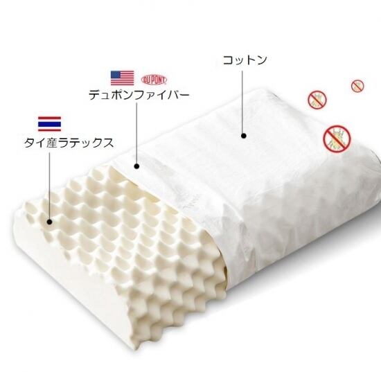 固くて柔軟性のある天然ラテックスの優れたサポート力で頭と首の圧迫を軽減☆