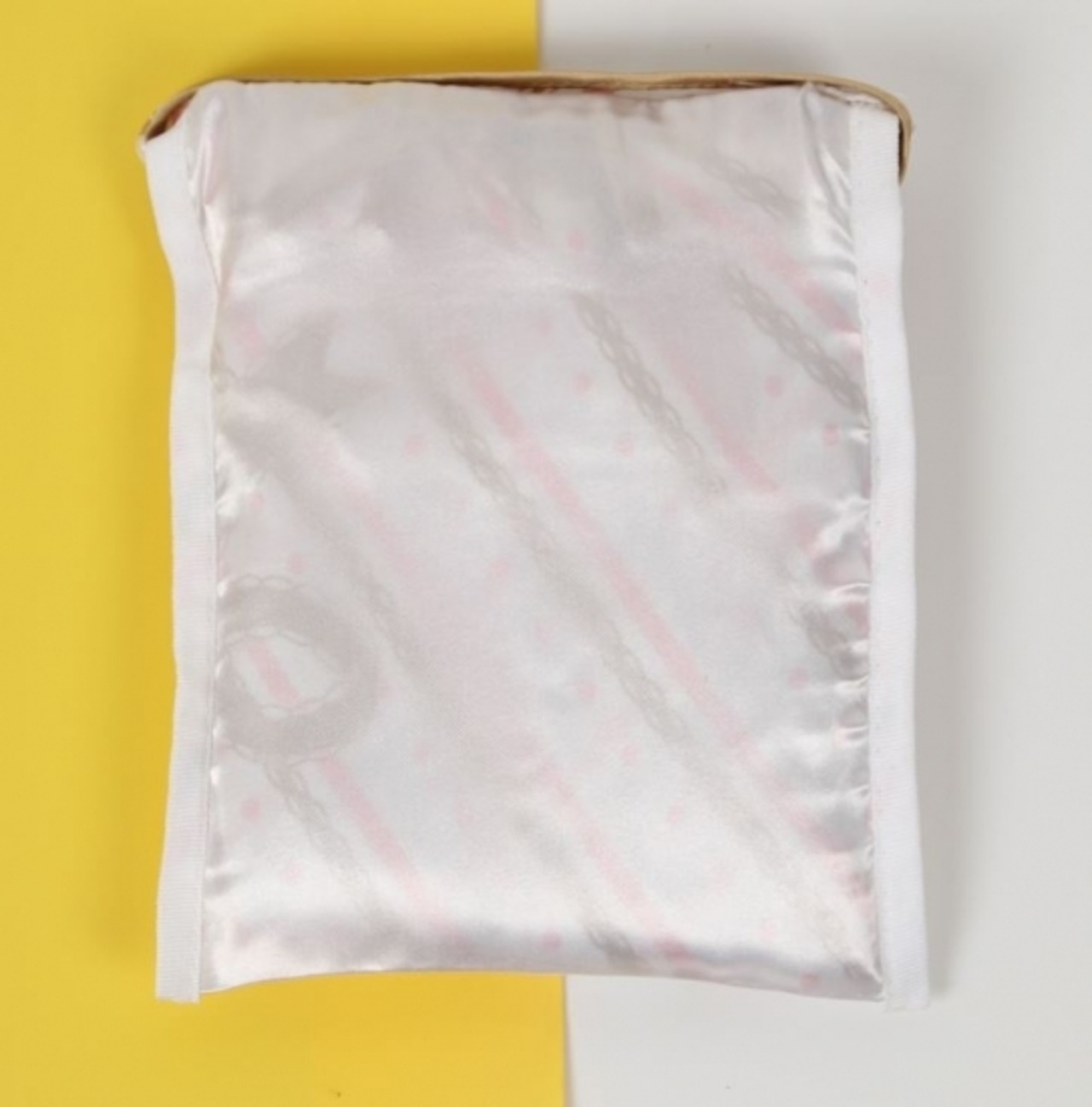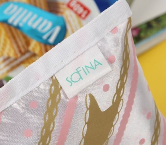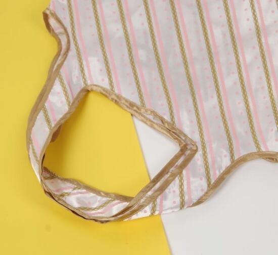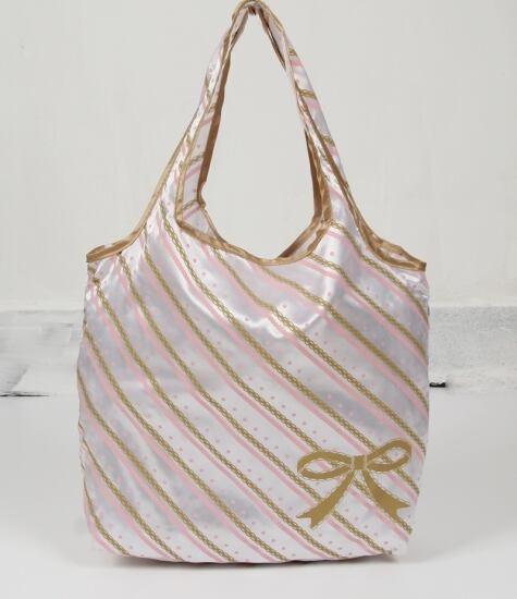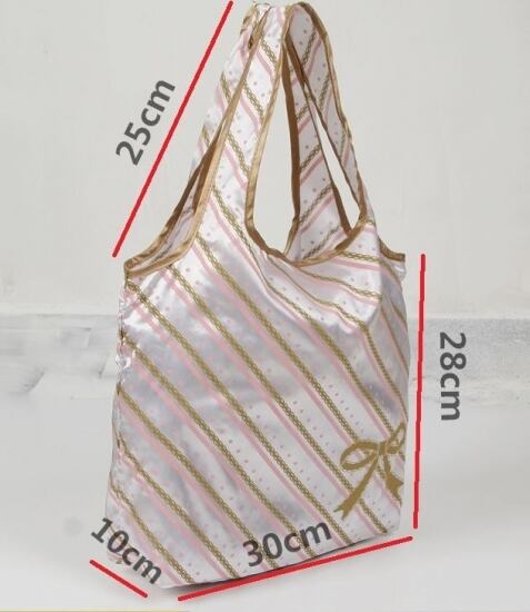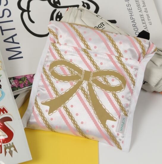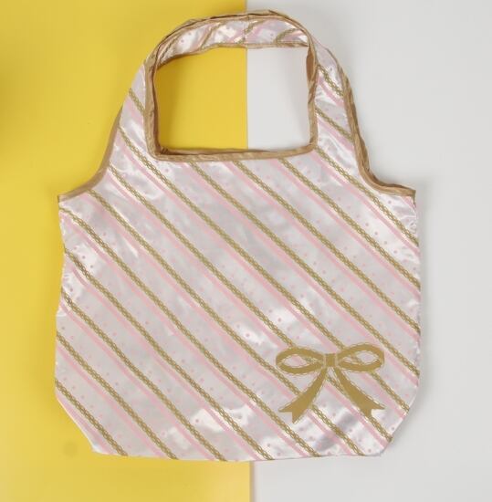高級感のあるシルク調の生地にプリントデザインがキュートな折りたたみエコバッグ。