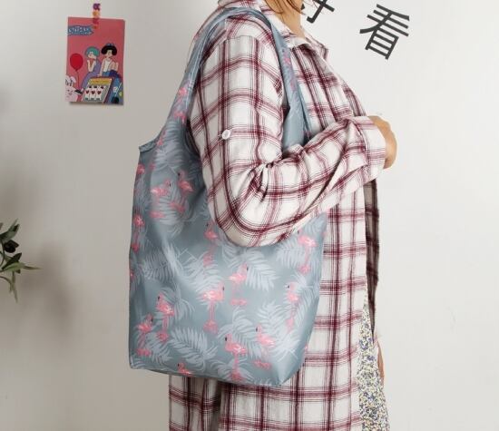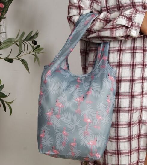 ハンカチ感覚でポケットからサッと取り出せる折りたたみナイロンバッグ。