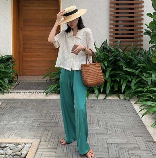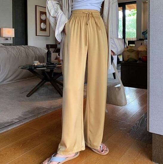 パンツ レディース ワイドパンツ ロング ストレートパンツ 夏 おしゃれ サテン 韓国 ハイウエスト ウエストゴム パンツ レディース ワイドパンツ ロング ストレートパンツ 夏 おしゃれ サテン