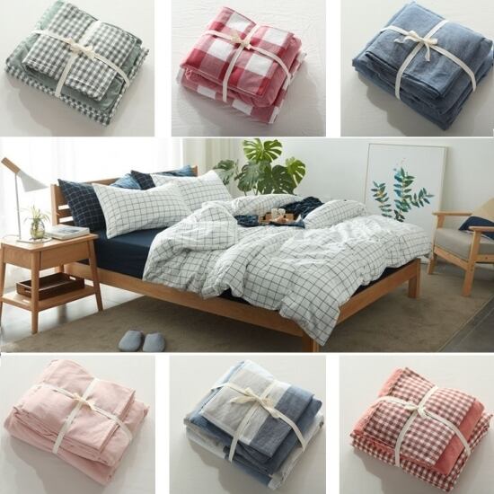 シンプルで使い勝手の良いコットン掛け布団カバー・シーツ・枕カバー2枚の4点セット。