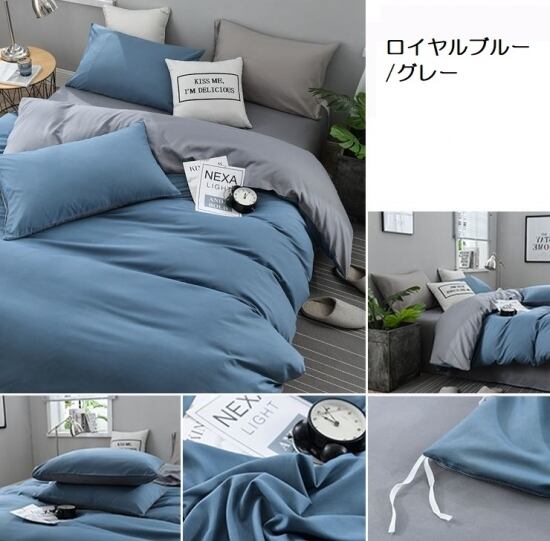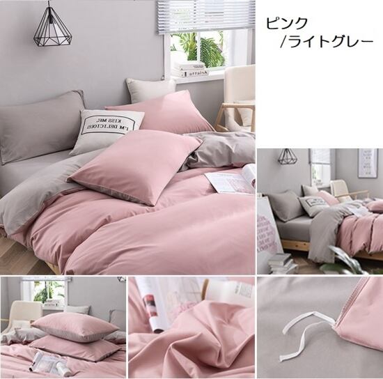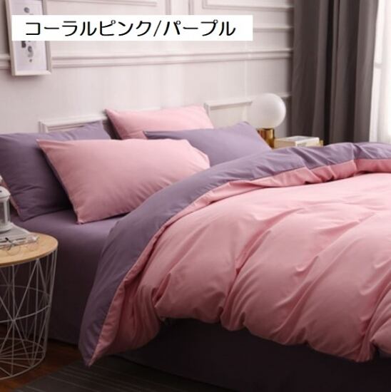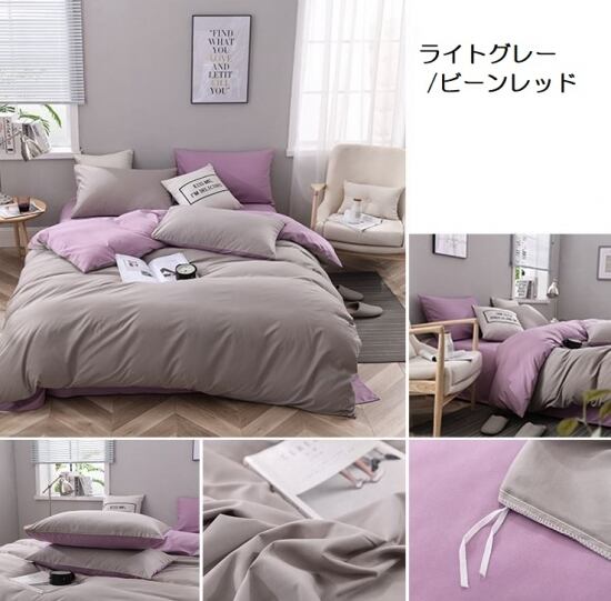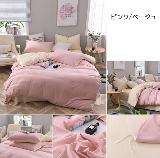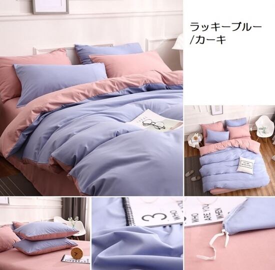 シンプルで使い勝手の良いコットン掛け布団カバー・シーツ・枕カバー2枚の4点セット。