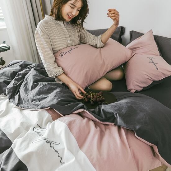 トリコカラーデザインがお洒落なコットン掛け布団カバー・シーツ・枕カバー2枚の4点セット。