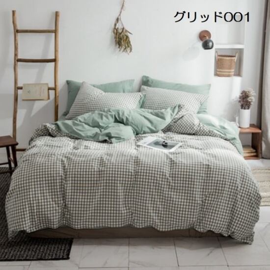 シンプルで使い勝手の良いコットン掛け布団カバー・シーツ・枕カバー2枚の4点セット。