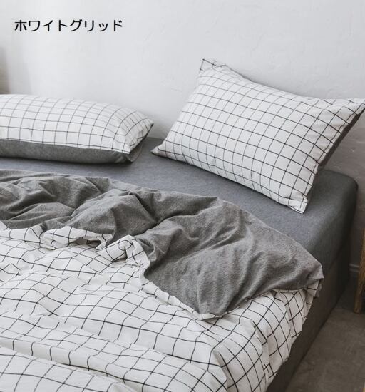 シンプルで使い勝手の良いコットン掛け布団カバー・シーツ・枕カバー2枚の4点セット。