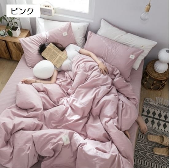 シンプルで使い勝手の良いコットン掛け布団カバー・シーツ・枕カバー2枚の4点セット。