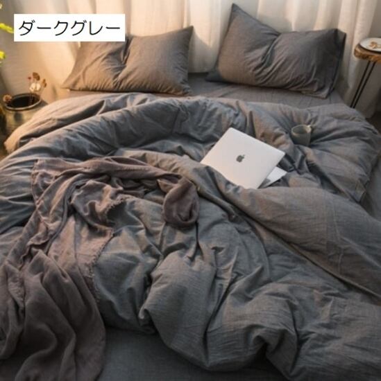 シンプルで使い勝手の良いコットン掛け布団カバー・シーツ・枕カバー2枚の4点セット。