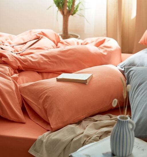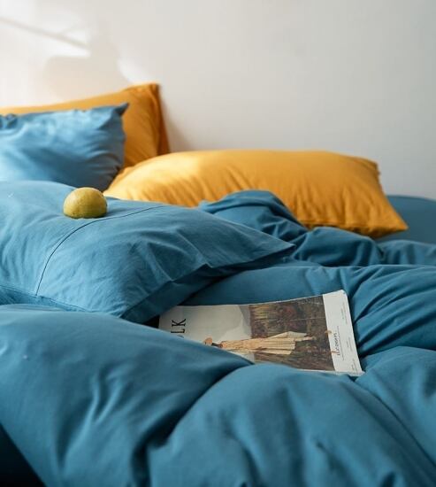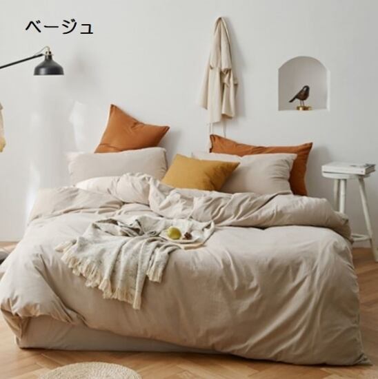 シンプルで使い勝手の良いコットン掛け布団カバー・シーツ・枕カバー2枚の4点セット。