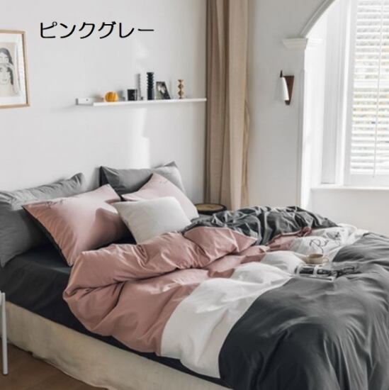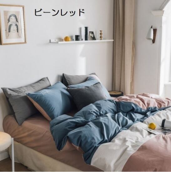 シンプルで使い勝手の良いコットン掛け布団カバー・シーツ・枕カバー2枚の4点セット。