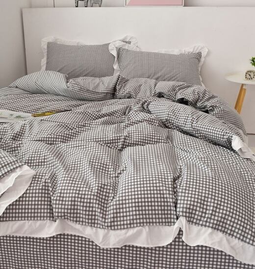 フリルデザインがキュートなコットン掛け布団カバー・シーツ・枕カバー2枚の4点セット。