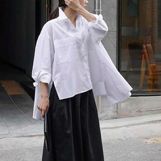 ブラウス シャツ レディース トップス 大きいサイズ アシンメトリー ルーズ ブラウス シャツ レディース トップス 大きいサイズ アシンメトリー ルーズ ゆったり 大人 オーバーシルエット 無地
