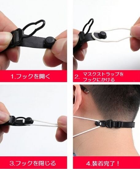マスクのゴムひもをフックにかけるだけの簡単装着☆