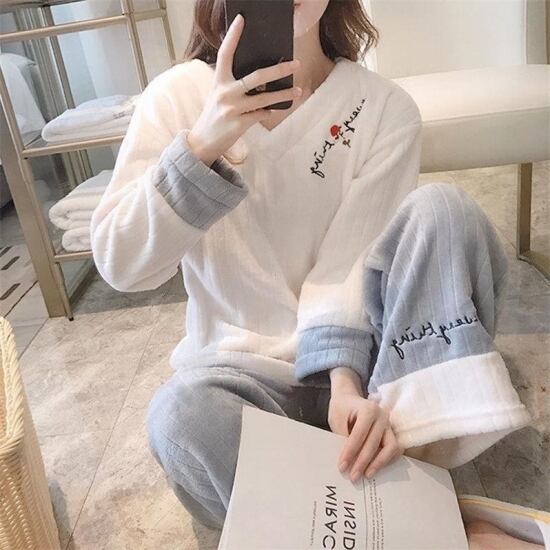 【一部即納】ルームウェア もこもこルームウェア ルームウェア上下セット ルームウェア秋冬 ナイトウェア パジャマ 可愛い セットアップ 長袖 部屋着 Vネック ふわふわ リラックスウェア ゆったり 大きいサイズ