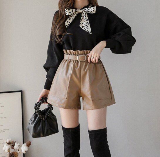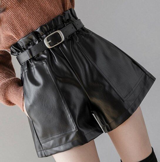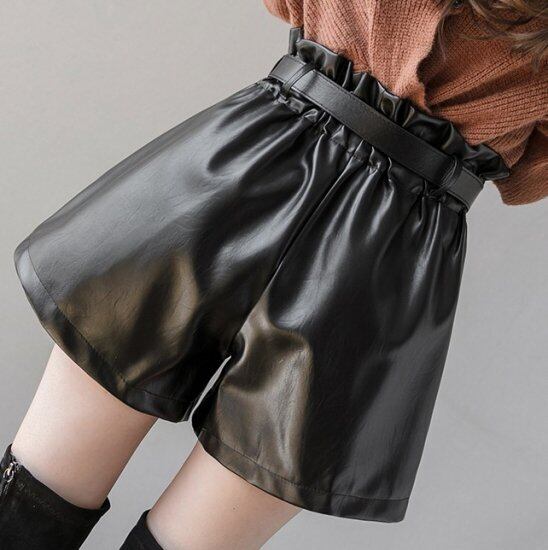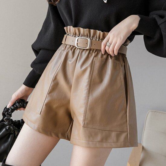 ショートパンツ フェイクレザーパンツ ショート フェイクレザー ベルト付き トレンド 大きいサイズ 秋冬 冬スペシャルセール ショートパンツ フェイクレザーパンツ ショート フェイクレザー トレンド