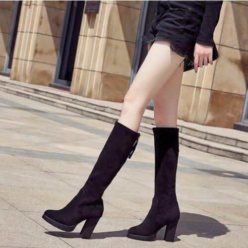 ブーツ レディースブーツ レディース ロングブーツ バックファスナー 素材違い シンプル ベーシック 太ヒール 疲れにくい 歩きやすい きれいめ カジュアル ブーツ レディースブーツ レディース
