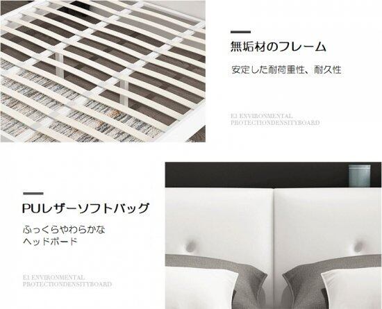 ベッドフレーム:PUレザー、高密度ecoボード、無垢材