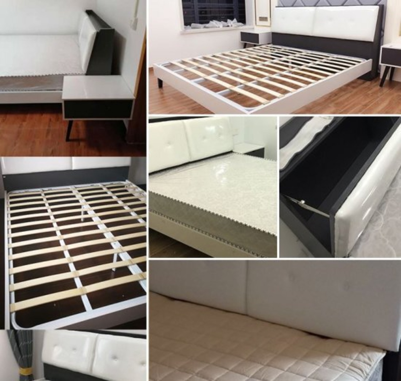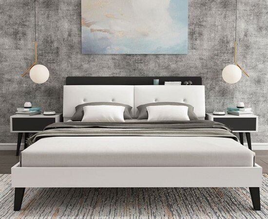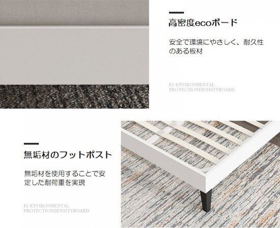 ベッドフレーム:PUレザー、高密度ecoボード、無垢材
