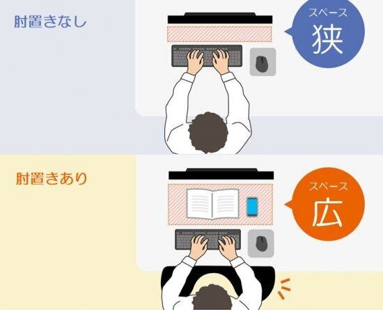 デスク天板に引っ掛けるだけで簡単に肘置き台を作ることができる後付けのアームレスト。