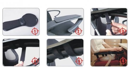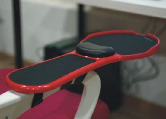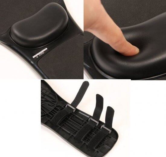 チェアのアームレスト部にセットするだけで簡単に肘置き台を作ることができるマウスパッド付きリストレスト。