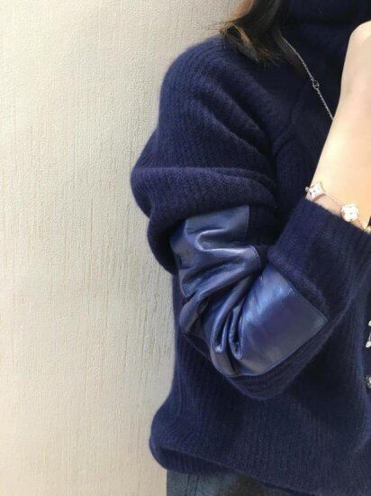 【取寄】セーター ニット レディース ハイネック タートルネック レザーバイカラー 長袖ニット セーター レディース ハイネック タートルネック レザー バイカラー 長袖