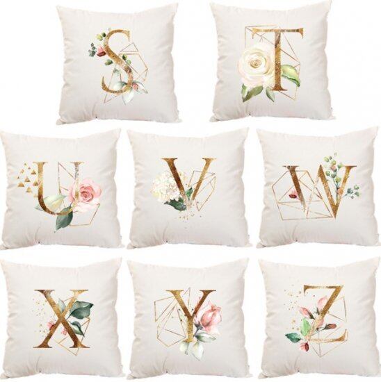 花柄にアルファベットデザインが可愛いクッションカバー。