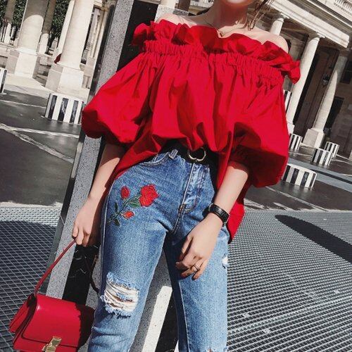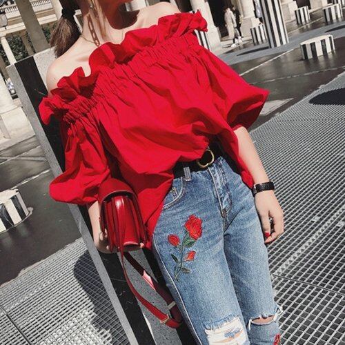 トップス レディース オフショル ブラウス オフショルダー フリル 夏 肩出し トップス 無地 夏新作 五分袖 トップス レディース オフショル ブラウス オフショルダー フリル 夏 肩出し トップス