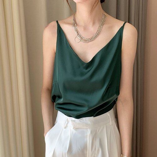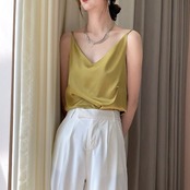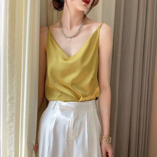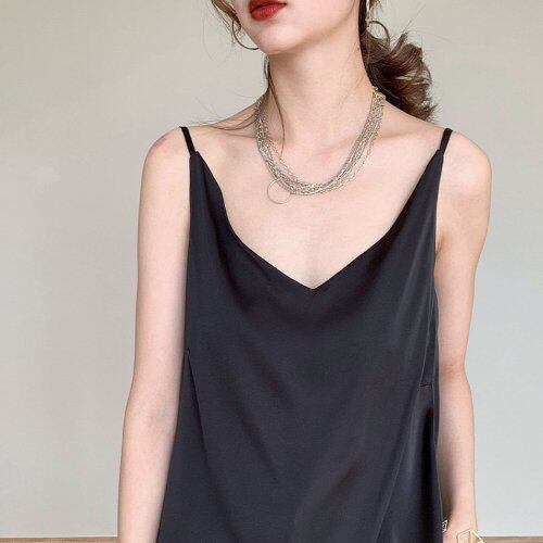 キャミソール サテン インナー スリット Vネック レイヤード キレイめ カジュアル シンプル 無地 キャミソール 光沢 夏 キャミソール サテン インナー スリット Vネック レイヤード キレイめ