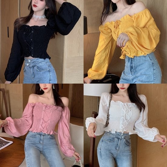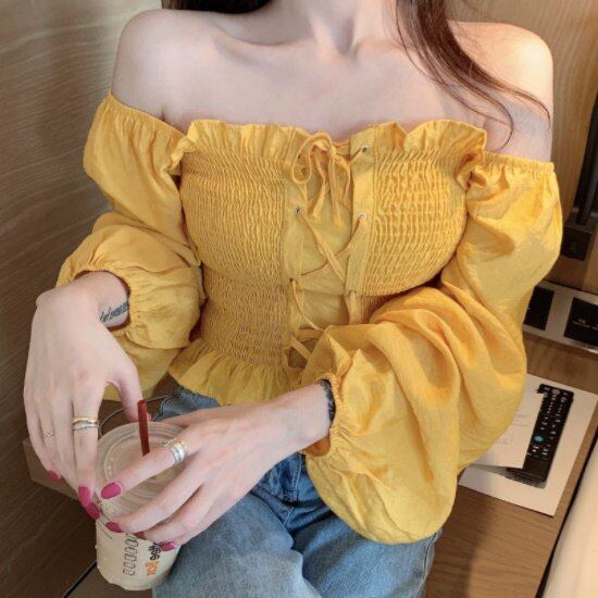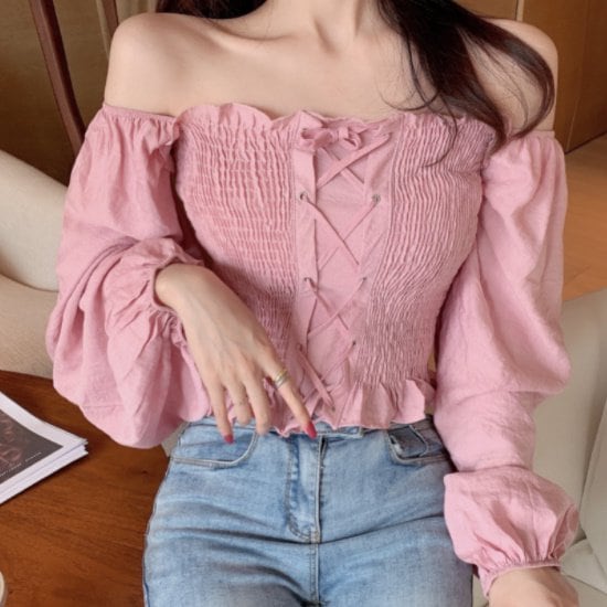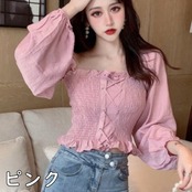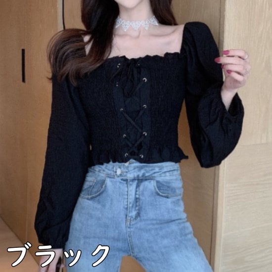 オフショルダー トップス オフショル ブラウス 夏 新作 オフショルダートップス オフショルダーブラウス レディース 長袖 レースアップ チューブトップ シャーリングブラウス シャーリングトップス