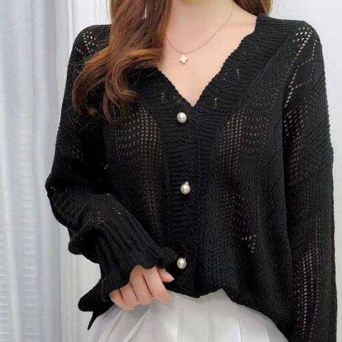 【取寄】カーディガン レディース ニット ボリュームスリーブ かぎ針編み 秋 冬 ゆったり 大きいサイズ 韓国 ファッション 秋冬新作 カーディガン レディース ニット かぎ針編み 秋 冬