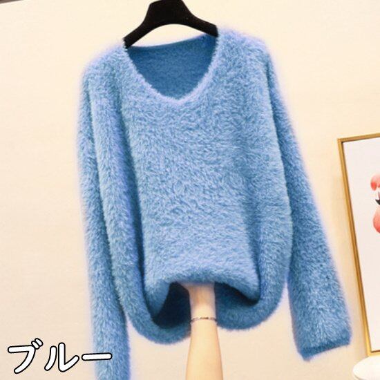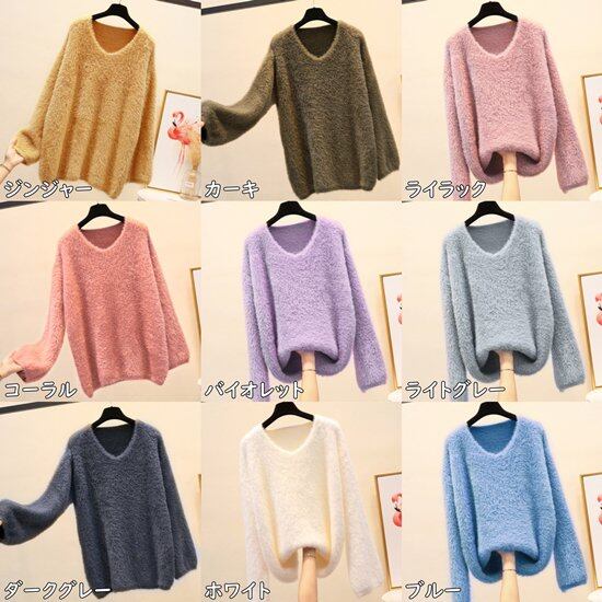 【取寄】ニット レディース トップス 秋冬新作 ニットセーター セーター ゆったりニット レディースニットトップス ニットトップス vネックニット vネック vネックトップス 秋 vネックレディース