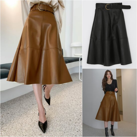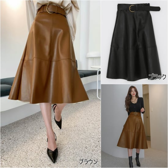 皮デザインがおしゃれな大人スカート。