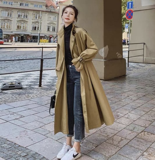ゆったりシルエットが魅力のロングトレンチコート。