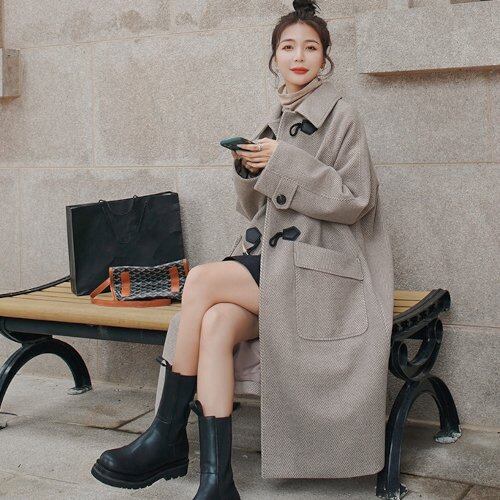 ダッフルコート レディース 秋冬新作 ミドル丈 ヘリンボーン柄 クラシカル 大人カジュアル 体型カバー コート 上品 シンプル アウター ゆったり ダッフルコート レディース 秋冬新作 ミドル丈
