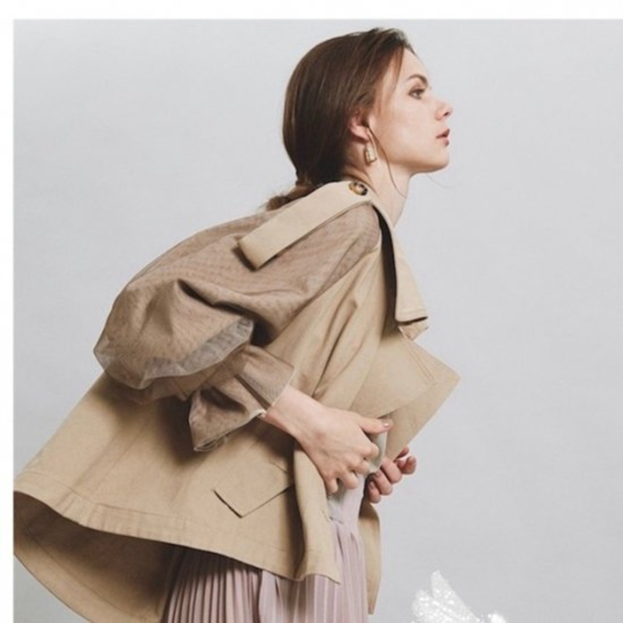トレンド感たっぷりのショートトレンチコート。