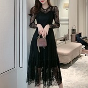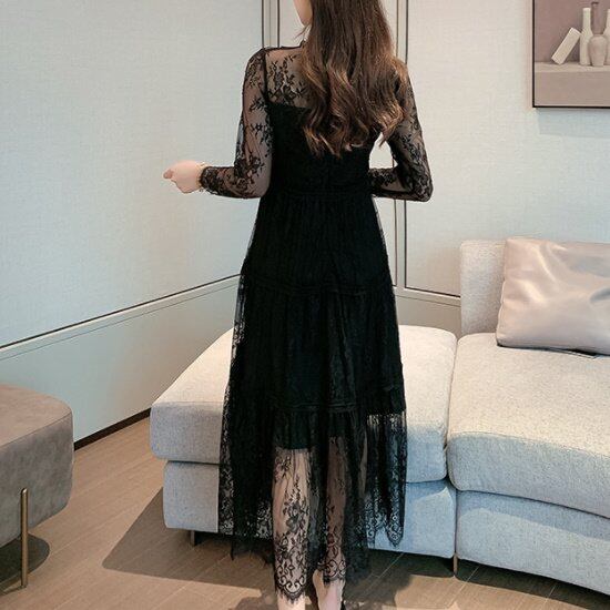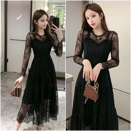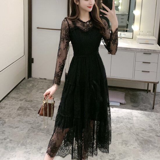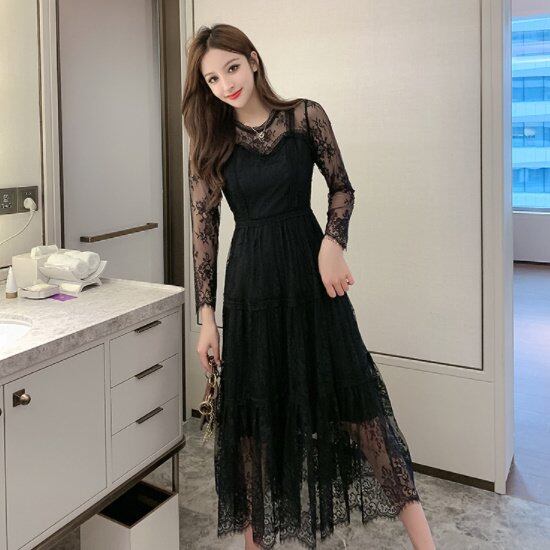 演奏会ドレス ピアノ 演奏会 ドレス 演奏会用 ロングドレス 大きいサイズ 袖あり 黒 発表会 新作 ロング パーティードレス 長袖ドレス 長袖 総レースドレス レースワンピースドレス レース