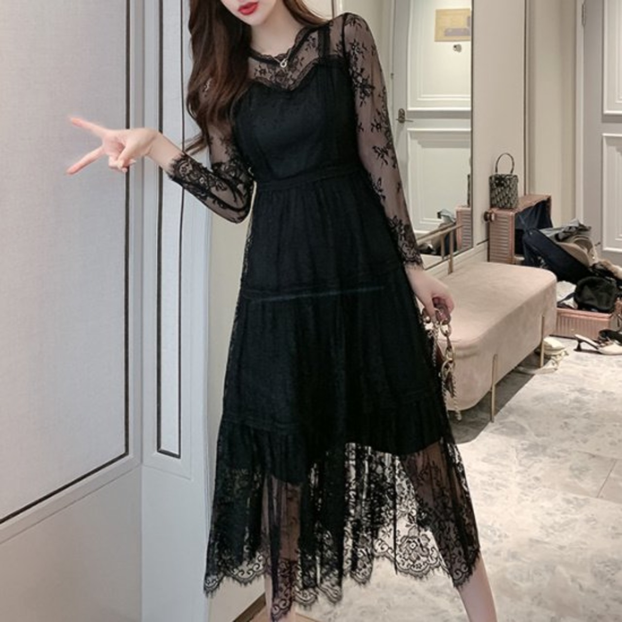 総レースが大人かわいいロングドレス。