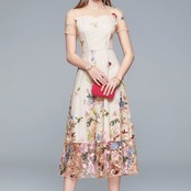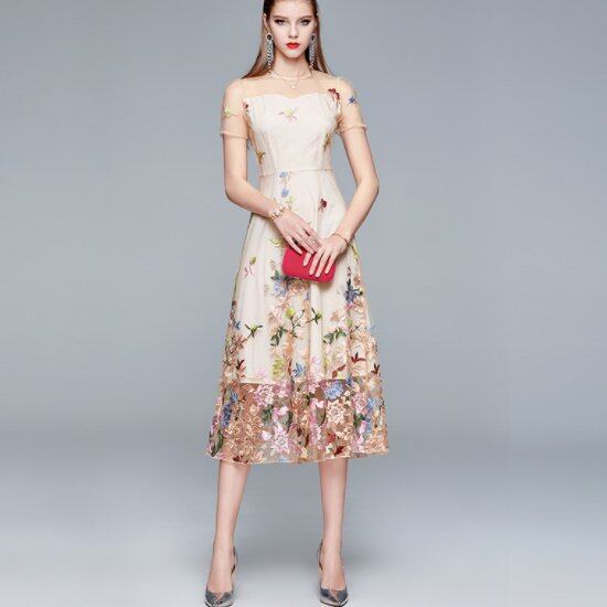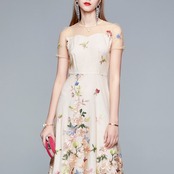 ビスチェデザインのドレスに透け感のある生地で大人フェミニンな印象に☆