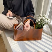 トートバッグ スクエアバッグ バッグ レディース 無地 カジュアルスタイル 高級感 大人 ハンドバッグ ポーチ付き レザー調 フェイクレザー カラバリ 4色 定番カラー オフィス 大容量 きれいめ