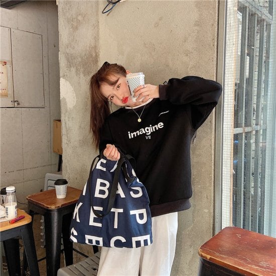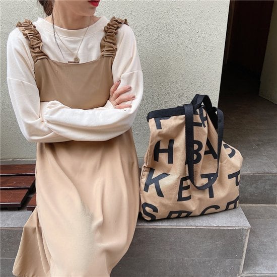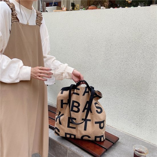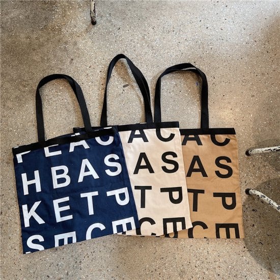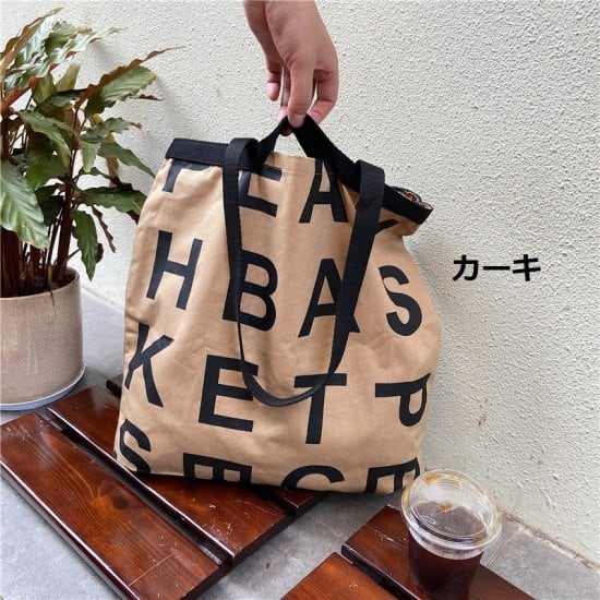 アルファベットのデザインがおしゃれで、キャンバス生地がこなれ感を演出してくれます♪