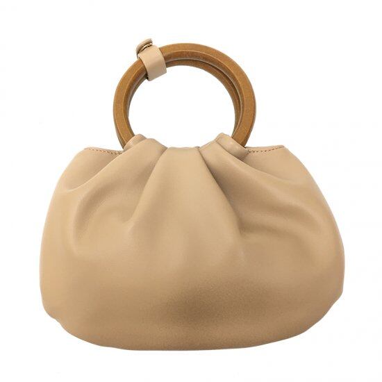 ハンドバッグ ショルダーバッグ 2way レディース バッグ ふわふわギャザー ウッドハンドル 斜めかけ クロスボディ 木製ハンドル カラバリ 4色 ブラック イエロー アプリコット ホワイト