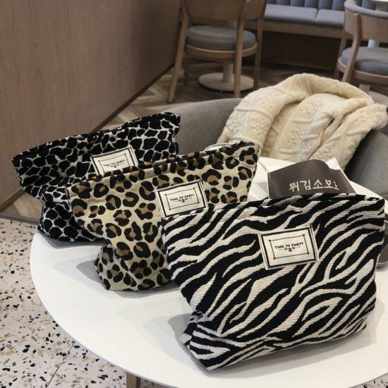 レオパード柄・ゼブラ柄がおしゃれな大容量ポーチです。
