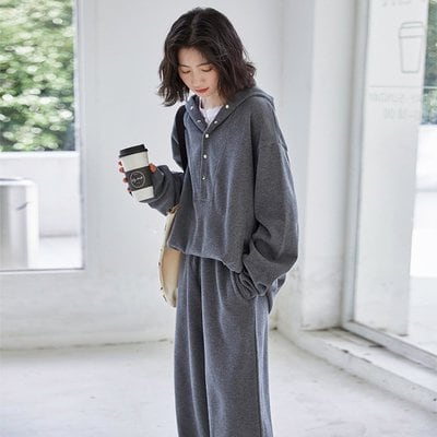 ルームウェア 上下セット パジャマ ゆったり レディース ルーズ リラックス 春 秋 ワンサイズ グレー 灰色 Vネック 無地 部屋着 寝間着 おしゃれ かわいい カジュアル きれい 上品 お泊り