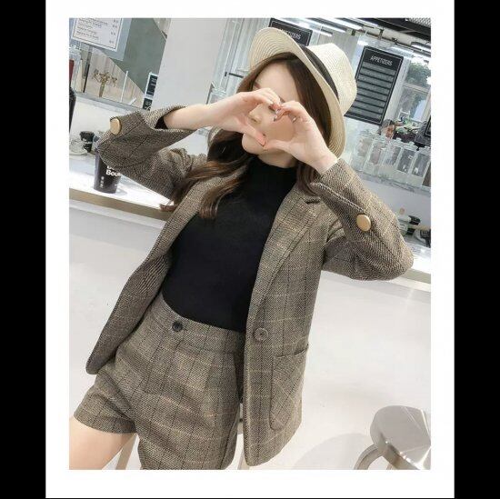 セットアップ レディース 長袖 2点セット チェック柄 ジャケット ショートパンツ フォーマル カジュアル 秋冬 きれいめ スーツ パンツセットアップ 大きいサイズ 韓国風 オルチャン