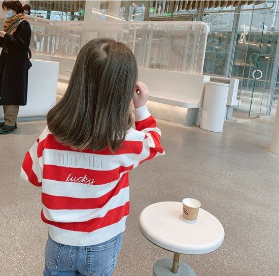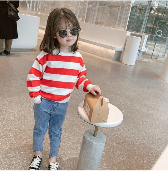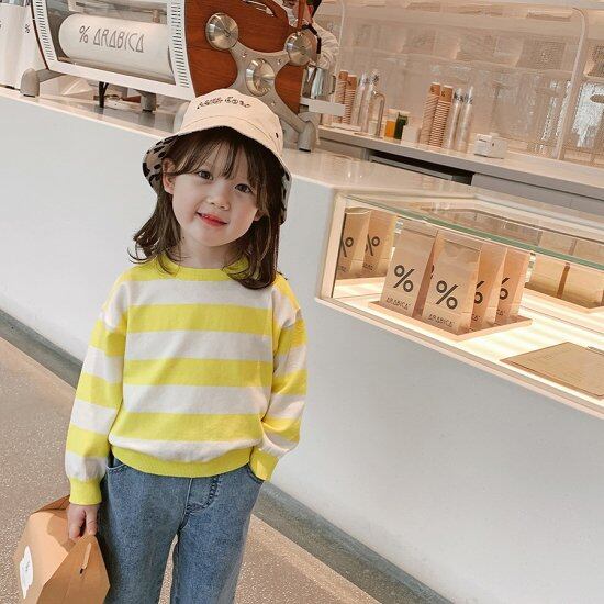 トップス ガールズ 子供用 女の子 ボーダー ストライプ 子供用 カラバリ4色 レッド ブルー ピンク イエロー ニット プルオーバー サイズ5展開 80-120 カジュアルスタイル おしゃれ 配色