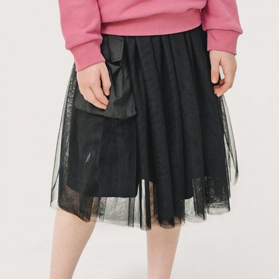 【スカート ガールズ 女の子 チュールスカート ミニ丈 異素材ミックス おしゃれ プリンセススカート ミニ 春 秋冬 新作 ブラック プリンセス ポケット 子供服 可愛い サイズ5展開 110-150】