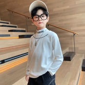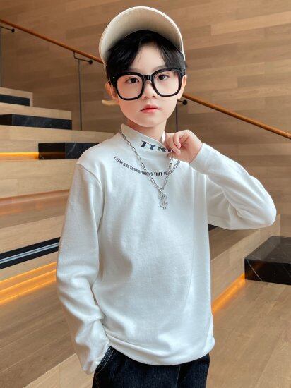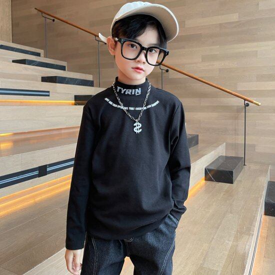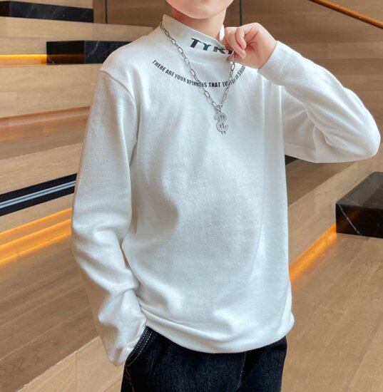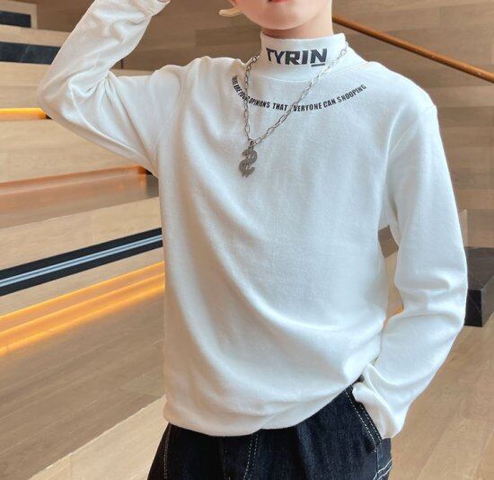 トップス タートルネック ハイネック キッズ ボーイズ 男の子 カラバリ2色 ブラック ホワイト サイズ2展開 120 130 カジュアルスタイル 春 秋冬 新作 デイリー プルオーバー ロゴ
