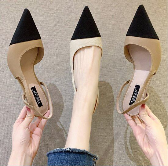 【パンプス レディース カラバリ2色 ライトブラウン オフホワイト バックストラップ 切り替え ポインテッドトゥ ハイヒール ピンヒール 春夏 秋冬 オールシーズン サイズ5展開22.5-24.5cm】